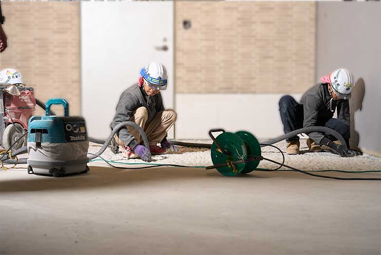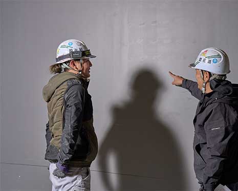 現場の状況を確認しながら、終業に向けて作業を調整します。